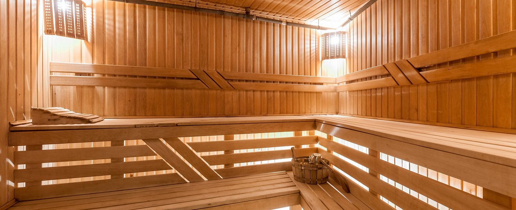 Сауна имеет 2 раздевалки, 2 парилки (финская сауна), общий бассейн (глубина 1,5 м, площадь 19,4 кв.м.)